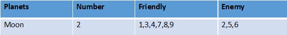 So, the Personal date number for 8th Jan 2021 of this person is Number 2. Now, you have to see the relationship of Number 2 with his Psychic Number (8) & Name Number (9) relationship of planets as shown here: